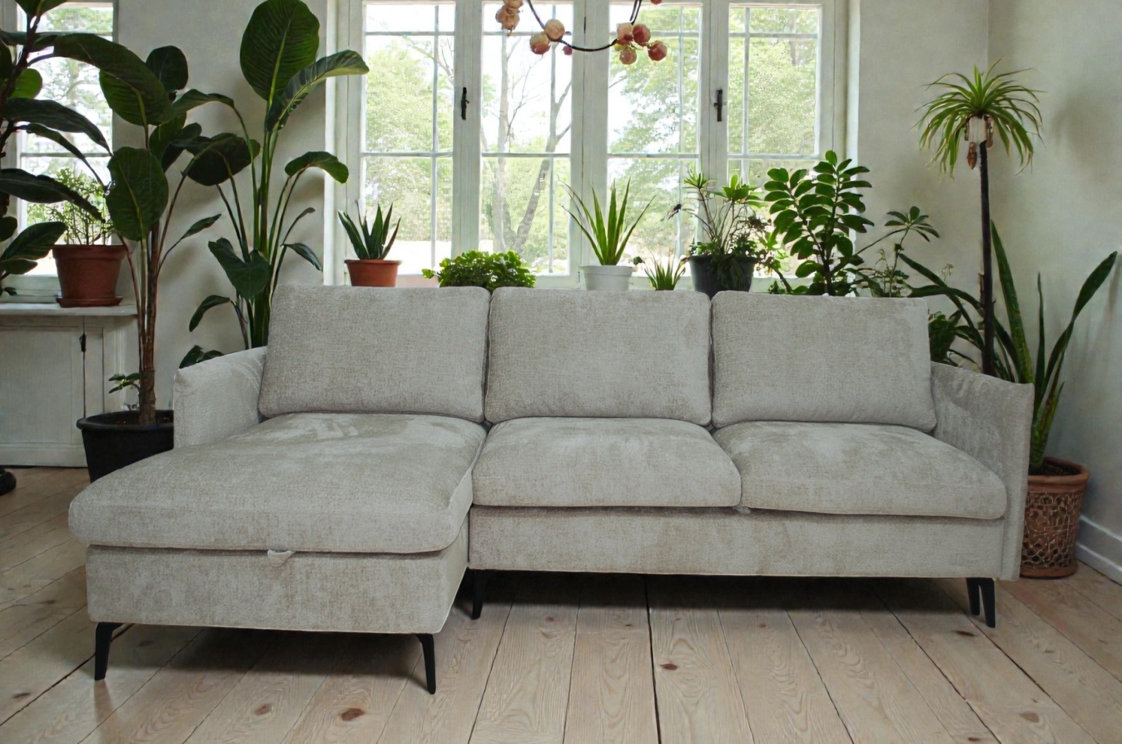 Угловой диван с механизмом "тик так", с отоманкой (ящик бельевой), габариты по глубине 103, по ширине 260, отоманка длина -160, размер спального 150*240, локотники 9 см