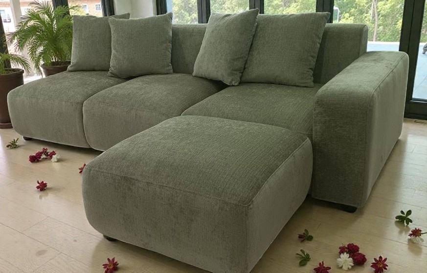 В модели пристутствует комплектация прямого дивана, пуфа,отдельных моделей.